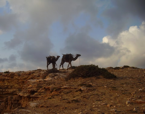 Asa! Aseara am cautat foarte mult un drum spre plaja la Cap Sim. Pe drum, nu pe cel pe care il cautam noi, era plin de excavatoare si de o multime de alte utilaje de constructie. Se pare ca s-a schimbat destul de mult peisajul fata de acum doi ani cand fusesera baietii ultima oara prin zona. Acum se construieste in stil mare (si pe aici) si cu siguranta ca obiectele noastre de studiu si-au mutat deja casele. Biotopul este daca nu distrus, cel putin mult diminuat. Prin toate asezarile prin care am trecut erau o multime de steaguri nationale. Nu stiu daca era vreo sarbatoare sau asa este obiceiul patriotic. Nufel spunea ca in Maroc sunt doi politisti la un civil. Nu stiu daca este exagerat sau aceasta este realitatea.